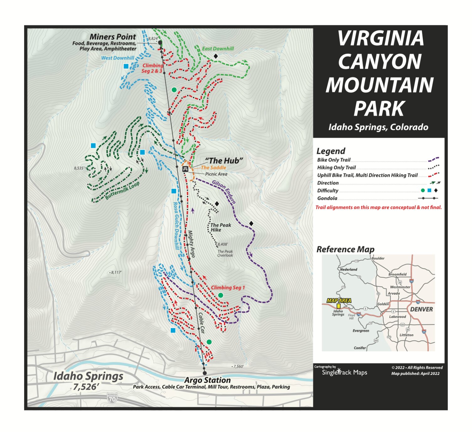 A new gondola attraction in Idaho Springs with mountain access for hiking + downhill riding. Official messaging: opening spring 2026.